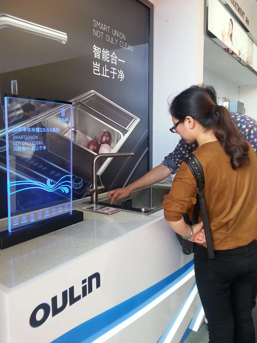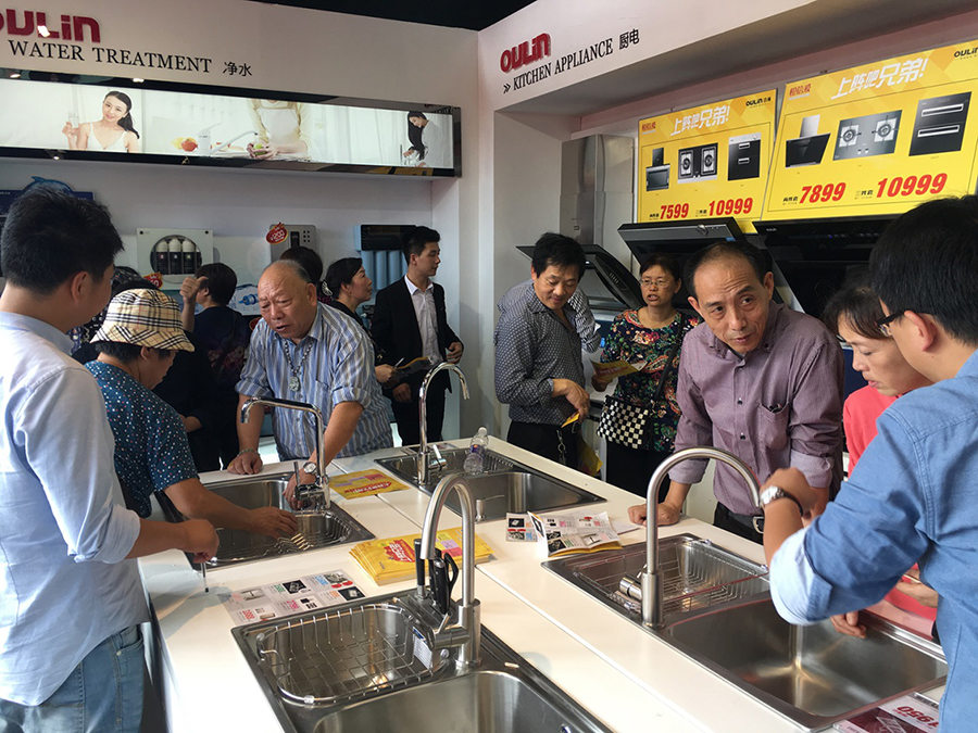 其中OULIN歐琳近期上市的凈水水槽在現(xiàn)場(chǎng)備受關(guān)注,在工作人員的操作演示與講解下,顧客表示價(jià)格在8000元左右的凈水水槽不僅整合了廚房空間,還能讓家中老少飲上放心水,的確物有所值。僅兩天,凈水水槽便銷售了10余單。