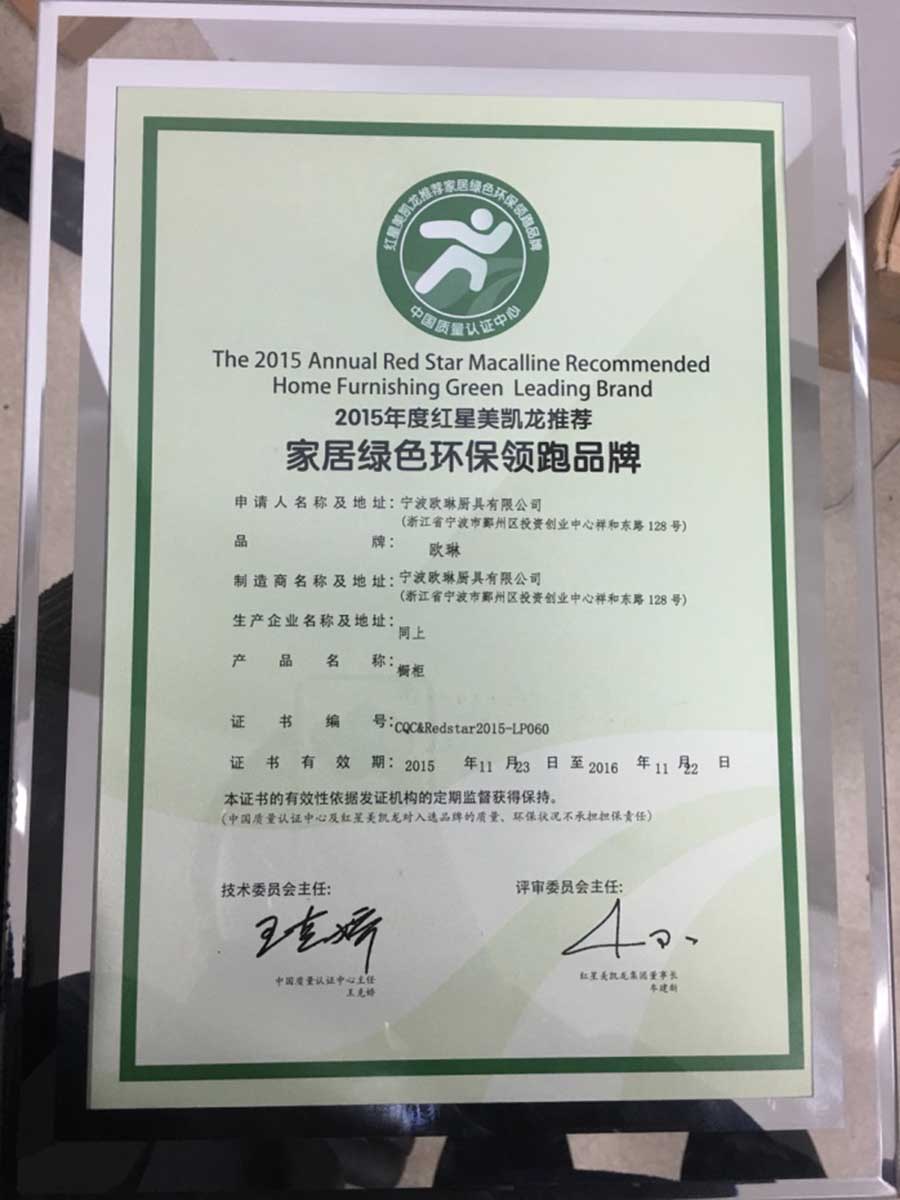 12月10日,由紅星美凱龍與CQC(中國(guó)質(zhì)量認(rèn)證中心)聯(lián)手發(fā)起第三屆“紅星美凱龍推薦家居綠色環(huán)保領(lǐng)跑品牌”評(píng)選結(jié)果揭曉。OULIN歐琳自2013年、2014年以來(lái)再次獲得該項(xiàng)榮譽(yù)(櫥柜行業(yè)),連續(xù)三年綠色領(lǐng)跑,為整體櫥柜行業(yè)樹(shù)立環(huán)保的新典范。