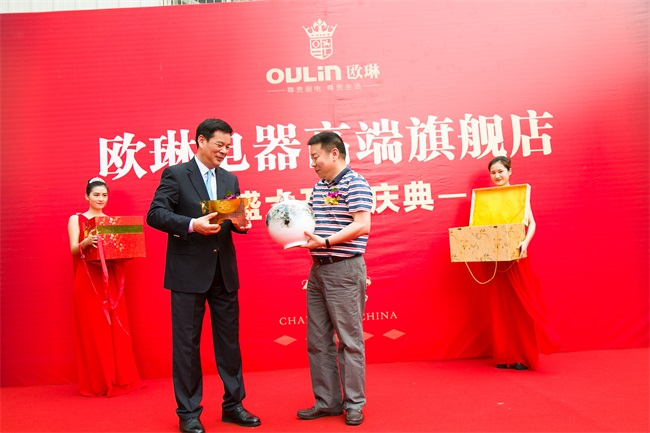 在開業活動現場,歐琳精心準備表演環節,優雅的弦樂四重奏、象征銳氣拼搏市場的舞獅點睛,還有歐琳總裁徐劍光與耀邦集團總裁羅建軍上臺互贈禮品,歐琳送出的是寓意雄踞四方福華雋永的盛泰豐鼎,耀邦送來寓意平安祥和的醴陵元詔藝術花瓶。