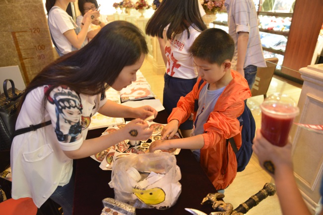 現場除了可免費觀影外,粉絲們還有機會獲得限量版的T恤、游戲道具等周邊,魔獸“腦殘粉”們可以說是燃起了游戲中的戰魂,拿到周邊后還當場玩起了cosplay,引得影院中其他魔獸粉絲圍觀加入,好不熱鬧。