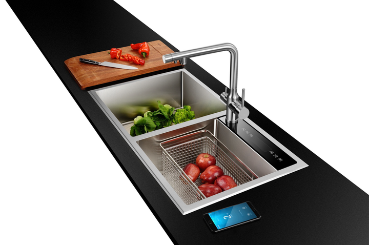比如歐琳發布的新款凈水水槽,相比初代產品的面世已經過去一年半的時間。2015年9月,歐琳發布首款凈水水槽產品,將水槽與凈水器結合,采用反滲透技術,定位高端家庭市場。如今的凈水水槽一方面升級了濾芯,另一方面在智能模塊上完全實現了智能化、可視化操作,將水槽帶入智能時代。