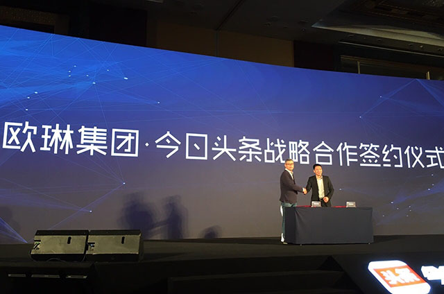 會上,歐琳集團與今日頭條戰略合作簽約儀式正式啟動。在互聯網發展的新形勢下,歐琳專注智能廚房里的溫情生活,用工匠精神的極致演繹生活的品質。歐琳集團和今日頭條的合作一定會碰撞出更精彩的火花,開啟廚具行業“智”的飛躍。