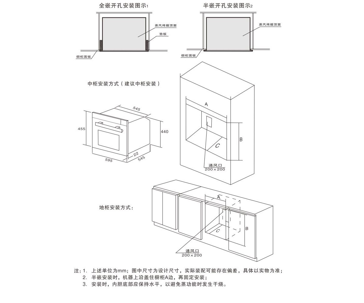 | 產品尺寸 | 寬595X高455X深545(mm) | 開孔尺寸 | 寬555X高445X深590(mm)半嵌 寬600X高460X深590(mm)全嵌 |